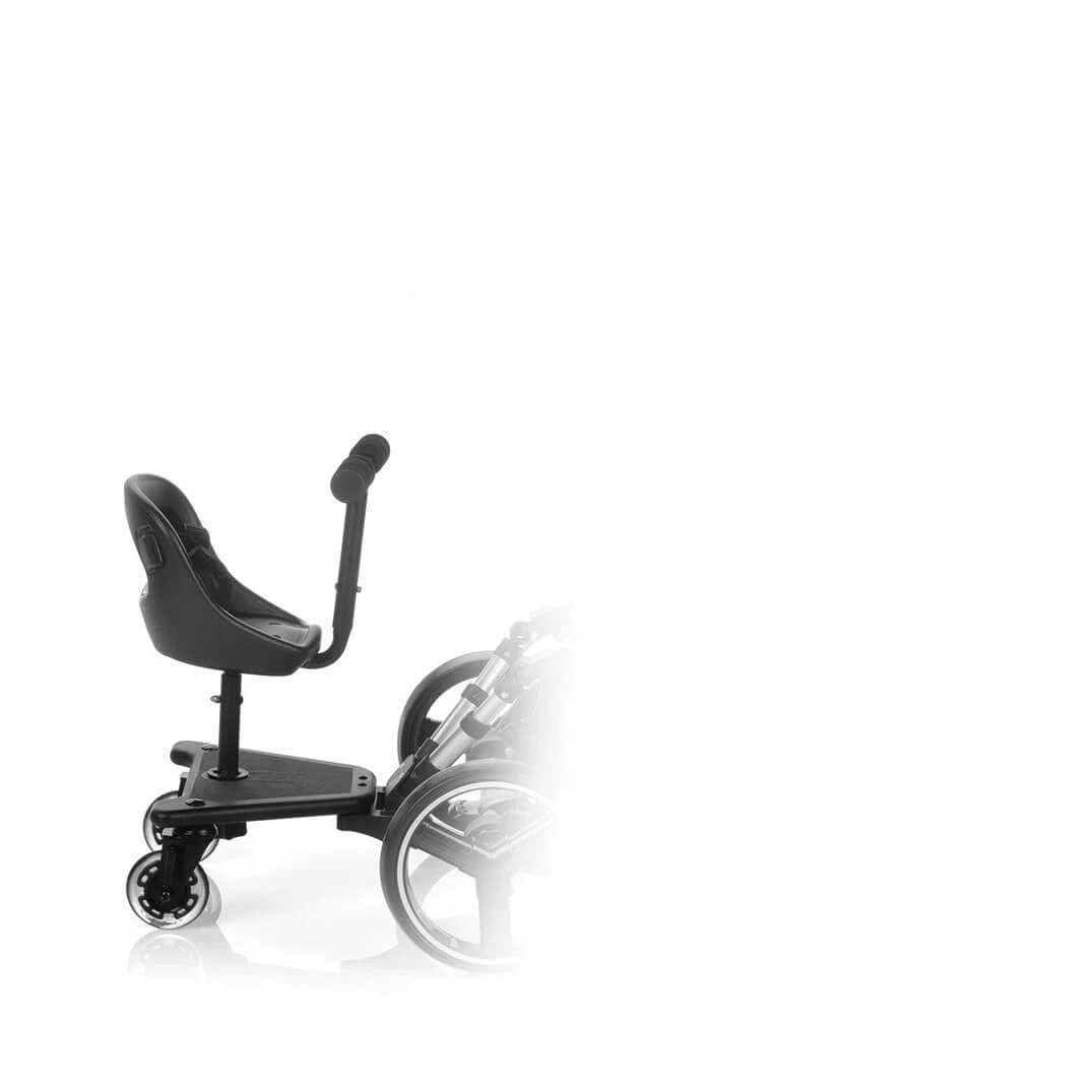 Découvrez le siège pour planche à roulettes de poussette de la marque Be Cool. Cette assise est compatible avec le marche-pied universel de la même marque. Il s’installe de façon sûre et rapide. La barre du guidon passera entre les jambes pour apporter plus de stabilité.