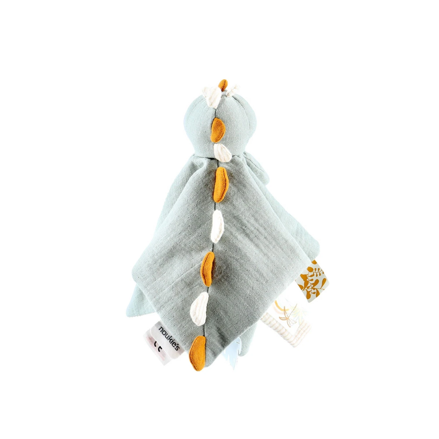 Découvrez le doudou en coton bio dinosaure Stegi collection Stegi, Tiga & Ops de la marque Noukie’s. Ce doudou tout doux possède un attache tétine pour ne pas perdre cet objet si précieux. Ces petites étiquettes à machouiller et ses différentes textures vont développer l’éveil et les sens de votre tout-petit.