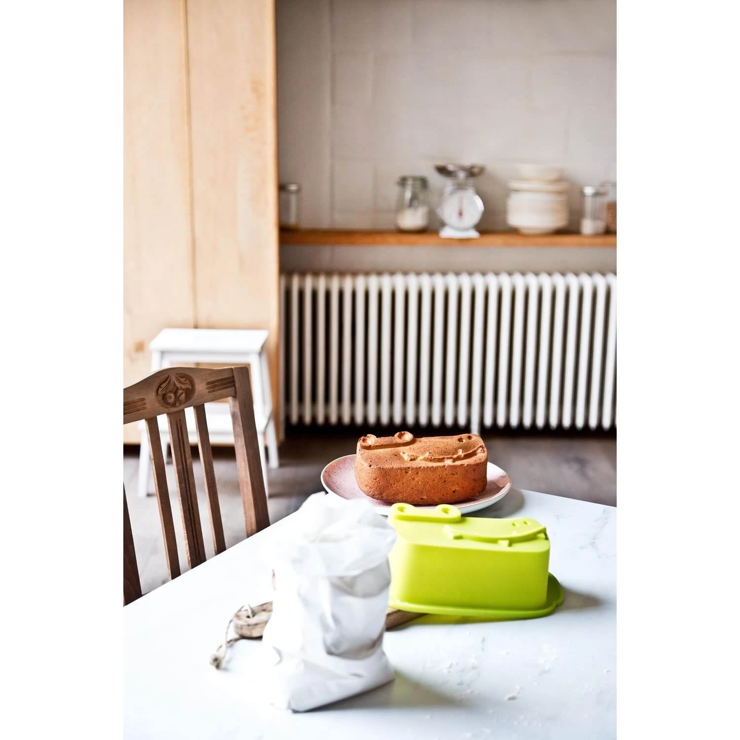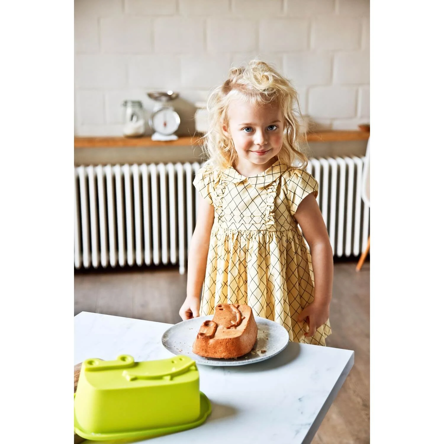 La cuisine est un moment de partage et de transmission adoré par votre enfant. Gâteau au chocolat, au yaourt, à la fraise… Tout est possible avec ce moule à gâteau Little Chef de Lilliputiens ! Il suffit de démouler le gâteau pour retrouver le visage du petit crocodile ! Les pâtisseries sont faciles à démouler grâce à ce moule en silicone. Le moule peut être lavé très facilement puisqu’il passe au lave-vaisselle.