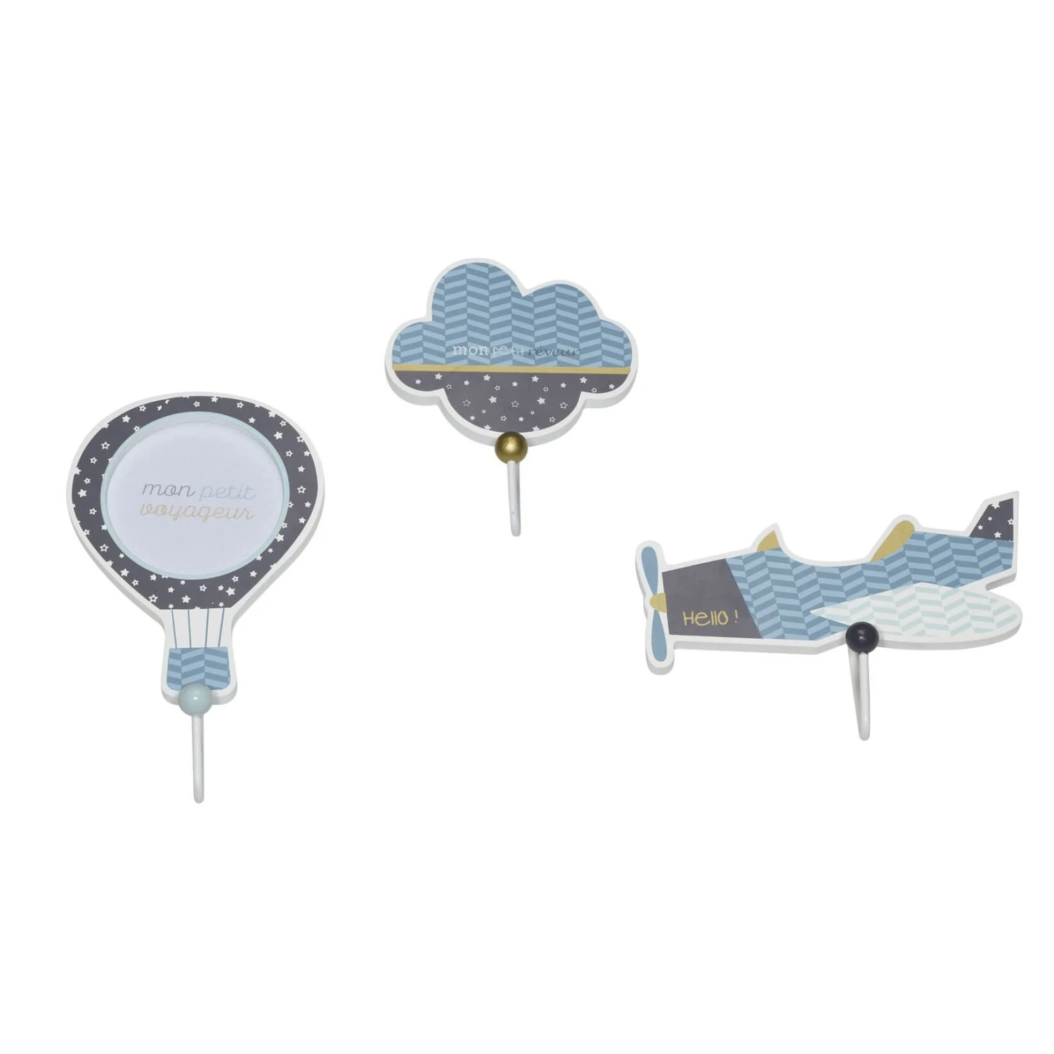 Ces 3 porte manteaux sont à la fois pratiques et très tendances. Il permettent de suspendre les vêtements de bébé tout en apportant une touche décorative dans sa chambre. Votre enfant va adorer ce set de patères ludiques et rigolos !