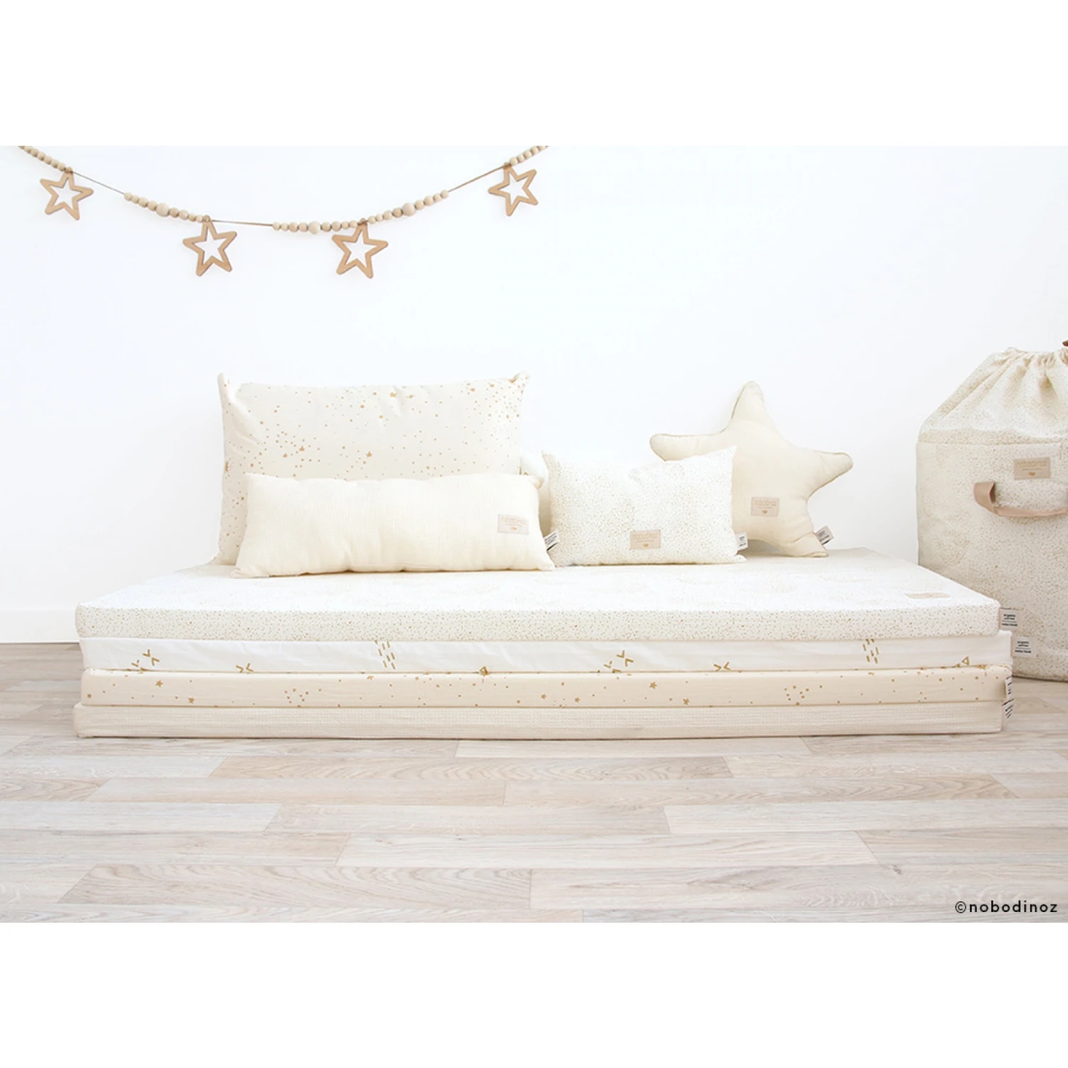 Craquez pour le moelleux du matelas de sol en coton bio St Barth Stella natural de la marque espagnole Nobodinoz. Il sera parfait pour créer un espace zen ou un coin lecture dans la cahmbre de bébé. Ce matelas de sol bébé est aussi idéal dans une chambre Montessori.