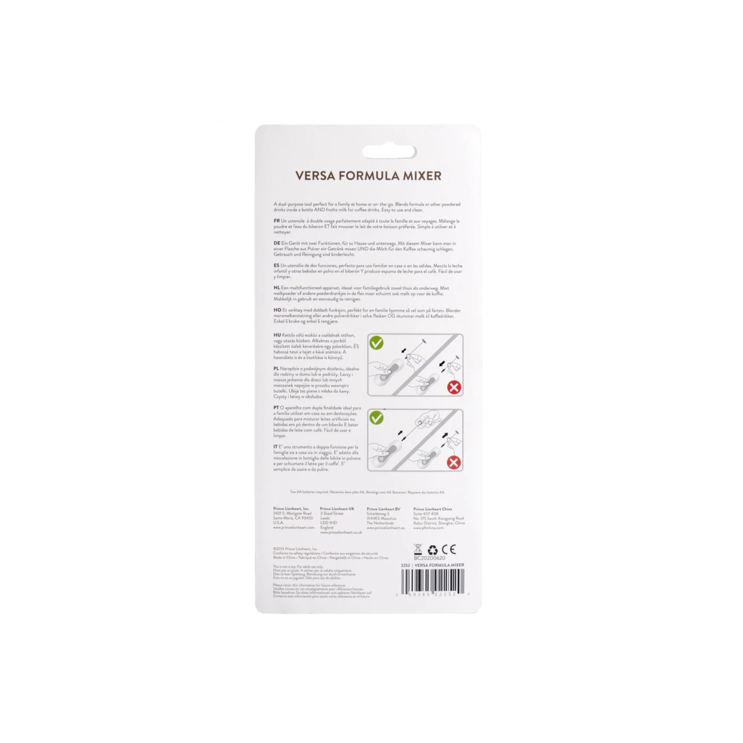 Fonctionne à l’aide de 2 piles AA (non fournies)