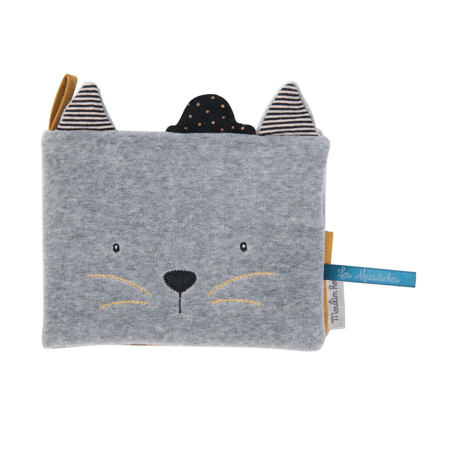 Découvrez ce magnifique album photo textile de la collection Les Moustaches de la marque Moulin Roty. Sur sa couverture, il reprend le portrait du chat Fernand ainsi que les couleurs de la gamme. Vous allez craquer pour cet album photo très mignon et tout doux. Idéal pour un cadeau de naissance.