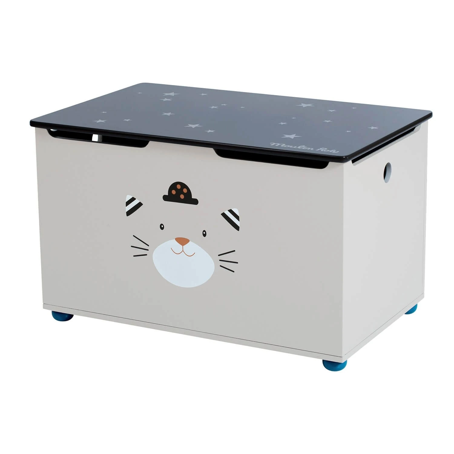 Découvrez ce joli coffre à jouets Les Moustaches de la marque Moulin Roty. Il possède un design sobre et moderne avec des lignes intemporelles. Il est très stable et sécuritaire, l’ouverture et la fermeture sont pensées pour éviter à votre petit bout de se pincer les doigts ou de se cogner la tête. Grâce au piston il tient ouvert seul et il est très facile à actionner même par un enfant.