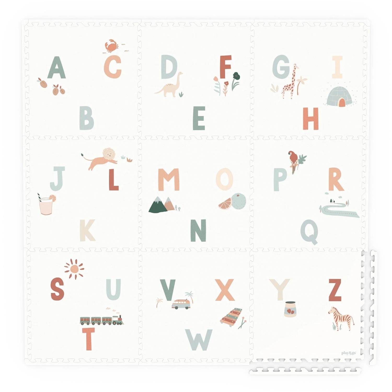 Découvrez le tapis de jeu / boîte de rangement de Eevaa Alphabet de la marque Play & Go. Ludique, ce tapis de jeu en mousse confortable et amusant s’assemble comme un puzzle et peut prendre la forme d’une cabane, d’une marchande ou tout ce que votre enfant pourra imaginer. Pratique, vous pourrez l’assembler en boîte de rangement pour y garder jouets et peluches.